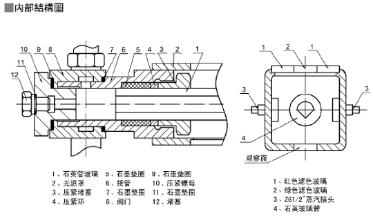 6、连接法兰:UGS-IA,IIA型号为JB82-59、DN20 、UGS-IIIA型号为JB82-59,DN150。 7、伴热夹套接头:ZG1/2 8、伴热蒸汽压力:≤0.6MPa 9、主要材质:Q235-A碳钢;1Cr18Ni9Ti不锈钢 |